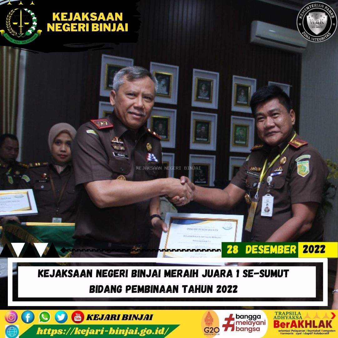 Kejaksaan Negeri Binjai Meraih juara 1 se-Sumut Bidang Pembinaan Tahun 2022